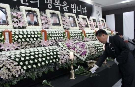 ▲ 정종섭 행정자치부 장관이 5일 중국 지안(集安)에서 버스사고로 사망한 공무원 9명의 영정이 있는 완주군 지방행정연수원 합동분향소를 찾아 조문하고 있다. 연합뉴스