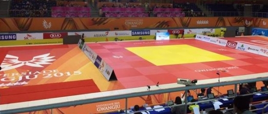 5일 도체육회 관계자에 따르면 광주U대회 유도장은 관람석이 2층에 있어 경기장을 1m 정도 높여 눈높이를 맞췄을 뿐 아니라 매트에서 나오는 유해물질을 완전히 차단한 친환경 제품을 사용하고, 경기장 주변도 아름다운 디자인의 카페트로 선수나 관중이 경기에 집중할 수 있도록 했다는 것.