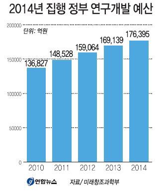 8일 미래창조과학부에 따르면 33개 부·처·청·위원회가 지난해 집행한 연구개발 예산은 605개 사업, 5만3493개 세부과제에 걸쳐 총 17조6395억원이었다. 이는 2013년도 16조9139억원보다 4.3% 증가한 것이다.