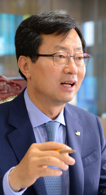 ▲ 지난 9일 취임식을 갖고 대한건설협회 신임 전북도회장으로 본격적인 행보를 시작한 정대영 신임 회장이 본보와 인터뷰를 하고 있다. 안봉주 기자