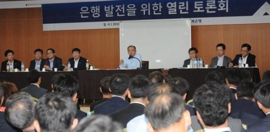 전북은행은 지난 10~11일 부안 대명리조트에서 임용택 은행장을 포함한 전 임원과 부점장 등 130여명이 참여한 가운데 ‘전북은행의 바람직한 미래’를 주제로 한 열린토론회를 개최했다.