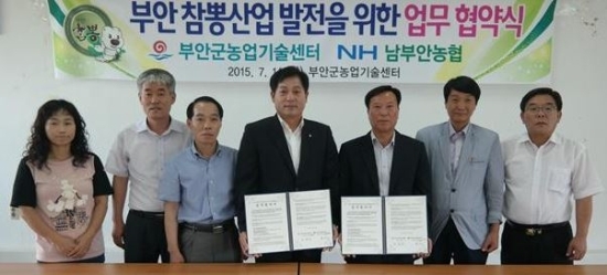 부안군농업기술센터(소장 하남선)와 남부안농협(조합장 최우식)은 지난 14일 농업기술센터 소회의실에서 참뽕산업의 6차 산업화를 위한 업무협약을 체결했다.