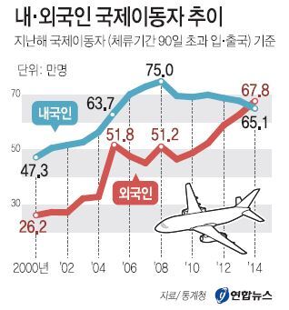 지금까지는 계속해서 내국인 국제이동자가 외국인보다 많았지만, 처음으로 상황이 역전된 것이다.