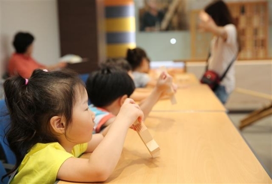 ▲ 한국전통문화전당 전통창호 짜맞추기 교실에 참여하고 있는 어린이들.