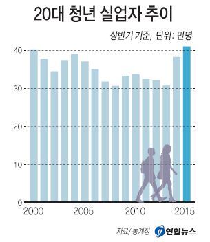 26일 통계청에 따르면 올해 상반기 20∼29세 실업자는 41만명으로 관련 통계가 나오기 시작한 2000년 이후 상반기 기준으로 가장 많았다.