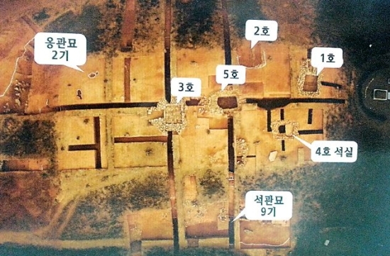문화재청 허가에 의해 2009년도에 고창군에서 발굴한 1호분의 분구 내부에서는 모두 5기의 석실과 2기의 옹관이 확인됐다.
