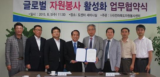 (사)전라북도자원봉사센터(이사장 김기원)는 5일 전북도 자원봉사센터 세미나실에서 전주대(총장 이호인)와 ‘글로벌 자원봉사 활성화를 위한 업무협약’을 체결했다고 밝혔다.