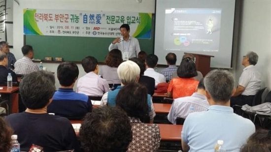 부안군이 수도권에 거주하면서 부안으로 귀농을 준비하는 도시민을 위해 한국농수산대학 산학협력단에 위탁 추진하는 ‘자연애’ 귀농학교 개강식을 11일 서울 MB아카데미에서 가졌다.
