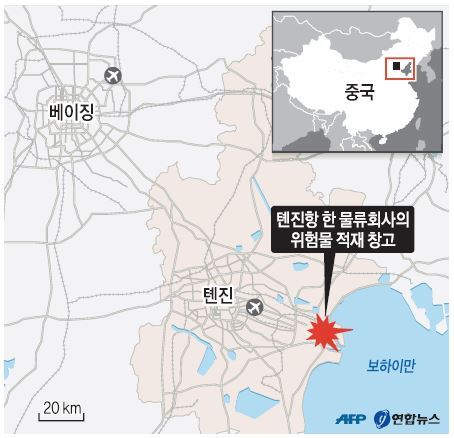 12일 오후 11시30분(현지시간)께 중국 동북부 톈진(天津)항에서 발생한 대형 폭발사고로 인한 사망자수가 최소 44명으로 늘었다고 관영 신화통신 등이 13일 보도했다. 특히 이번 사고에서는 화재진압에 투입됐던 톈진 소방당국 소속 소방관들의 희생이 큰 것으로 전해졌다.