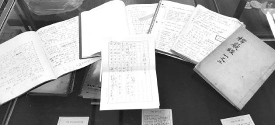 ▲ 동국대 미당문고에 진열된 미당의 시작(詩作)노트와 영어공부노트, 그리고 능엄경.