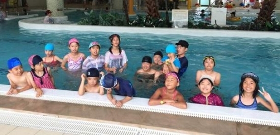 ▲ 고창 지역아동센터와 희맹샘학교 아동들이 고창웰파크시티 휴스파에서 물놀이를 하며 즐거운 시간을 보내고 있다.