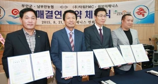 부안군은 지난 21일 김종규 부안군수와 최우식 남부안농협 조합장, 이태봉 두산위브더제니스 생활지원센터장, 최윤재 입주자대표회의 회장 등이 참석한 가운데 일산 두산위브더제니스 및 관리회사인 (주)타워피엠씨와 자매결연을 체결했다고 밝혔다.
