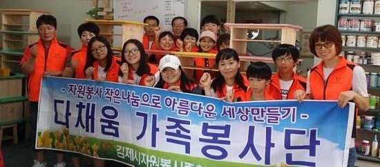 김제다채움가족봉사단은 지난해부터 자원봉사센터 프로그램과 연계, DIY가구 만들기 교육을 이수한 후 공간박스 및 책장, 1인용 테이블 등 생활가구를 직접 만들어 사회적으로 소외된 조손가정 및 지역아동센터, 독거노인들께 전달하는 ‘뚝딱뚝딱 행복공작소’를 운영한 사례가 높은 점수를 받았다고 관계자는 전했다.
