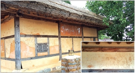 ▲ 지난 달 21일 방문한 질마재 마을의 미당생가. 벽에 낙서자국이 선명하게 드러나 있다.