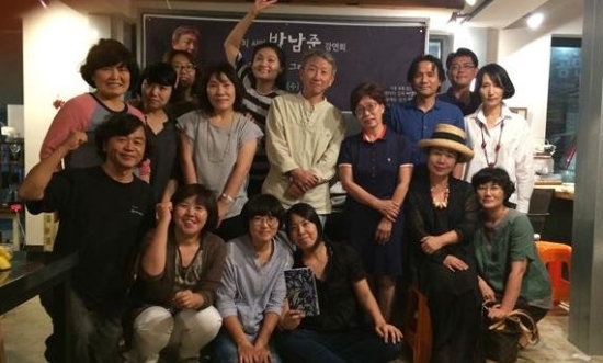▲ ‘봄 느린 기차’회원들이 박남준 시인의 초청 강연을 마치고 찍은 기념사진.
