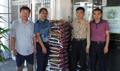 ▲ 사랑의 쌀을 기탁한 김제 ‘공덕면 젊은 농민들’.