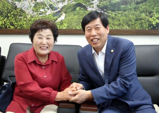 ▲ 남관우 전주시의회 의원이 22일 30년전 청년시절에 구조한 여성과 극적상봉, 서로 손을 잡고 있다.