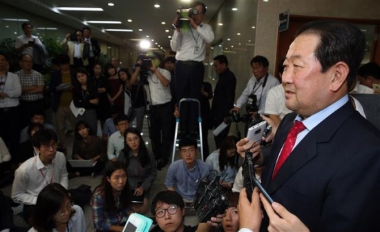 ▲ 새정치민주연합 박주선 의원이 22일 오후 국회 정론관에서 탈당 기자회견을 마친 뒤 기자들에게 둘러싸여 질문에 답변하고 있다. 연합뉴스