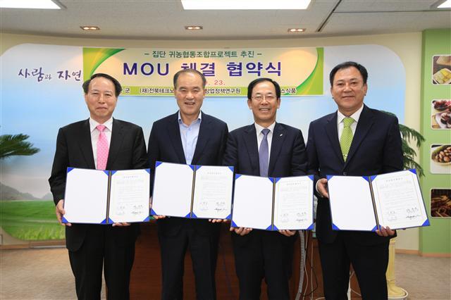 이날 협약체결은 조합원이 정착할 수 있는 사업장, 숙소, 게스트하우스, 공동물류창고 등 공동 활용 가능한 인프라를 구축하여 조합원들이 1차, 2차, 3차산업이 융합된 6차산업단지를 조성하는 집단 귀농협동조합 프로젝트의 성공을 위해 서로 협력방안을 모색하기 위해 체결됐다.