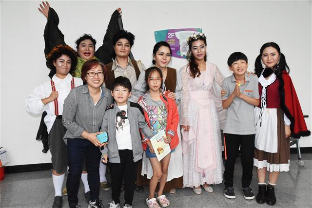 ▲ 어린이 오페라 ‘헨젤과 그레텔’을 관람한 김제지역 학생들이 배우들과 기념사진을 찍고 있다.