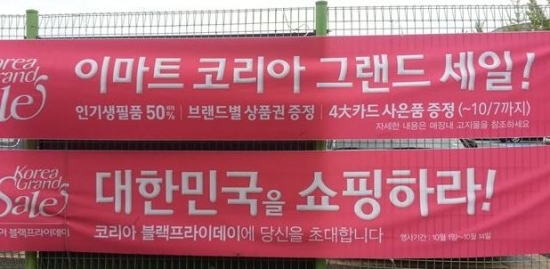 ▲ 추석 매출이 다소 부진했던 도내 대형마트들이 1일부터 14일까지‘코리아 블랙 프라이데이’행사를 실시한다.