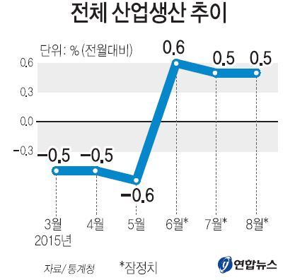 올 들어 월별 산업생산은 지난 3월(-0.5%)부터 3개월 연속 감소하다가 6월(0.6%)과 7월(0.5%)에 이어 3개월 연속 늘어났다.