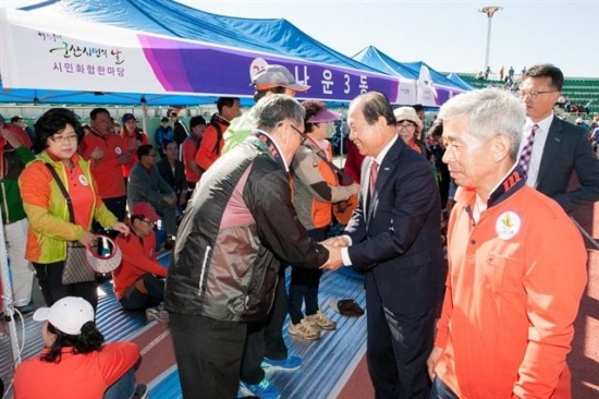 이튿날 진행된 시민화합한마당은 27개 읍면동 대항 체육경기로 진행되어 협동줄넘기 등 4개 종목의 치열한 경쟁이 펼쳐졌고, 관내 기업, 기관 등에서 협찬한 665점의 경품이 대회를 더 풍성하게 했다.