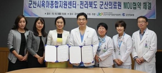 군산의료원(원장 김영진)과 군산시육아종합지원센터(센터장 윤진주)는 지난 5일 군산의료원 4층 회의실에서 양기관 임직원 6명이 참여한 가운데 상호우호증진을 위한 MOU를 체결했다.