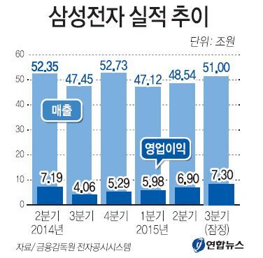 삼성전자는 7일 올해 3분기에 연결기준으로 7조3000억원의 영업이익(잠정실적)을 올렸다고 발표했다. 확정실적은 이달 말 공시된다. 이는 올해 2분기 영업이익(6조9000억원)보다 5.80% 증가한 실적이다.