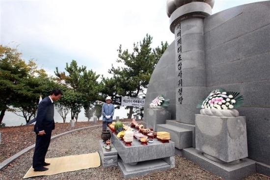 이를 추모하기 위해 사고해역을 정면으로 바라보는 있는 진리 연못 끝에 1995년도에 위령탑을 건립하고 매년 10월 10일 292명의 영령의 명복을 기리고자 위령제를 개최하고 있다.