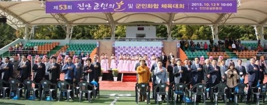 53주년 진안군민의 날 행사가 12일 진안공설운동장에서 송하진 도지사,박민수 국회의원, 이항로 진안군수, 황정수 무주군수, 윤석정 전북일보사장을 비롯한 지역주민 등 5000여명이 참석한 가운데 군민화합과 결속을 다지고 막을 내렸다.