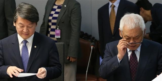 ▲ 새정치민주연합 김한길(오른쪽), 안철수 전 대표가 12일 오전 서울 여의도 국회 의원회관에서 열린 ‘새정치연합, 뭐가 문제인가?’ 토론회에 참석해 자료를 살피고 있다. 연합뉴스