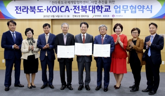 전북도는 14일 한국국제협력단(이하 KOICA, 코이카), 전북대와 국제개발협력사업(ODA, 오디에이) 추진을 위한 국제개발협력센터(이하 센터) 설치 업무협약을 체결했다.