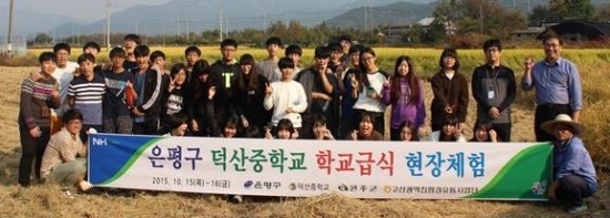 이날 은평구청 공무원과 덕산중학교 교사와 재학생 등 40여명이 참여한 가운데 경축자원화센터와 광역친환경농업 생산·유통시설 견학과 감따기 고구마캐기 벼베기 등 영농체험, 창포비누만들기 다듬이할머니공연 등 다양한 지역문화체험 시간을 가졌다.