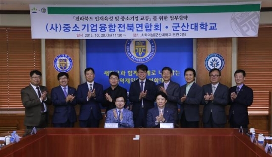 군산대학교(총장 나의균)와 (사)중소기업융합전북연합회(회장 김정곤)는 20일 군산대 본관 2층 소회의실에서 ‘전라북도 인재육성 및 중소기업교류’를 위한 협약을 체결했다.