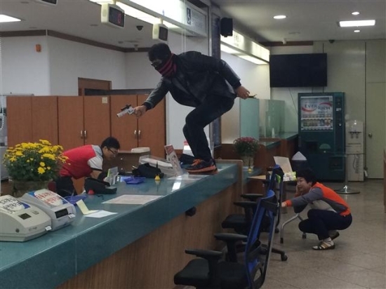 이번 훈련은 최근 잇따른 은행 강도 등 강력 범죄 발생과 관련, 직원들의 침착한 대응 및 신속한 신고를 위해 마련됐다.