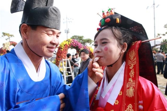 지난달 31일에는 주산면 김형길씨와 위쳉리응(캄보디아)씨가 제5회 부안국화축제 이벤트로 진행된 ‘국화와 사랑을’ 전통혼례식의 행운을 안았다.