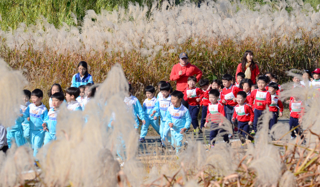 전주지역 영·유아 친환경급식 교육기관 모임인 ‘얘들아, 하늘밥 먹자’는 4일 오전 전주천 둔치에서 ‘억새랑 철새랑 꼬마 마라톤’행사를 열었다. 그동안 도심 생태하천 지킴이 활동을 해오던 유치원·어린이집 꼬마들은 이날 전주천의 자연을 누비며 생명과 함께 호흡하는 시간을 가졌다. 영·유아 유기농 급식과 환경 지킴이 활동, 자연 속 생태교육 프로그램 등을 진행하고 있는 ‘얘들아, 하늘밥 먹자’에는 전주 코끼리유치원을 비롯, 파란하늘어린이집과 이화유치원·해바라기유치원 등 10개 영·유아 교육기관이 참여하고 있다.
