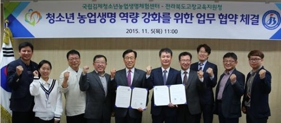 국립김제청소년농업생명체험센터(원장 최희우·이하 김제센터)와 고창교육지원청(교육장 김국재)은 5일 김제센터 회의실에서 농업생명 역량강화를 위한 MOU를 체결했다.
