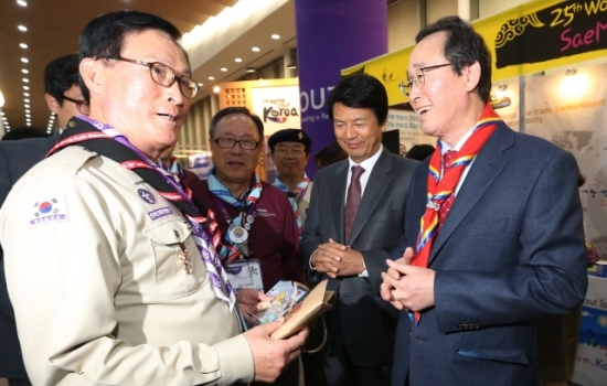 송 지사는 지난 6일 전남 광주 김대중컨벤션센터 일원에서 40개국 500여명이 참여한 가운데 개최된 2015 아태스카우트총회에 참석, 2023 세계잼버리 대회 새만금 유치의 뜻을 밝히면서 참가국들의 지지와 협조를 부탁했다.
