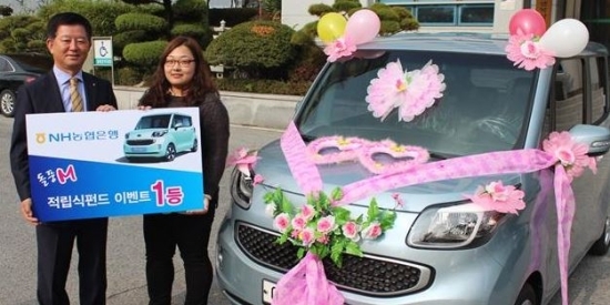 농협은행 전북본부(본부장 소성모)는 10일 ‘돌풍 M 적립식펀드 이벤트’에 당첨된 1등 고객에게 경품(경차 레이)을 증정했다.