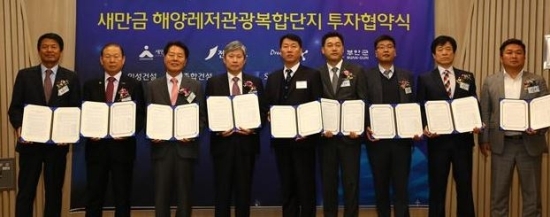 또 일성건설 등 4개사로 구성된 컨소시엄은 2016년부터 2022년까지 새만금 관광·레저용지 1지구(61만6000㎡)에 3000억 원, 새만금 4호 방조제 인접부지(54만5000㎡)에 2000억 원 등 총 5000억 원을 투입해 ‘해양레저관광복합단지’를 조성할 예정이다. 해양레저관광복합단지에는 마리나를 조성해 요트 등을 즐길 수 있는 기반시설과 호텔·콘도, 워터파크 시설 등이 들어설 예정이다.
