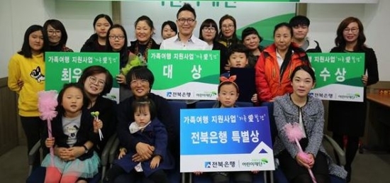 JB금융그룹 전북은행(은행장 임용택)은 지난 10일 초록우산 어린이재단(전북지역본부장 구미희) 소강당에서 도내 한부모가정 가족여행 지원 ‘가족 愛 발견’ 여행수기 시상식을 가졌다고 11일 밝혔다.