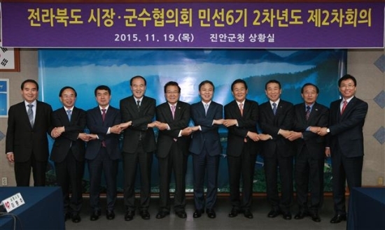 민선 6기 2차년도 전북시장군수협의회(회장 이건식 김제시장) 제2차 회의가 이항로 진안군수 등 도내 11개 시장·군수가 참석한 가운데 19일 진안군청에서 열렸다.