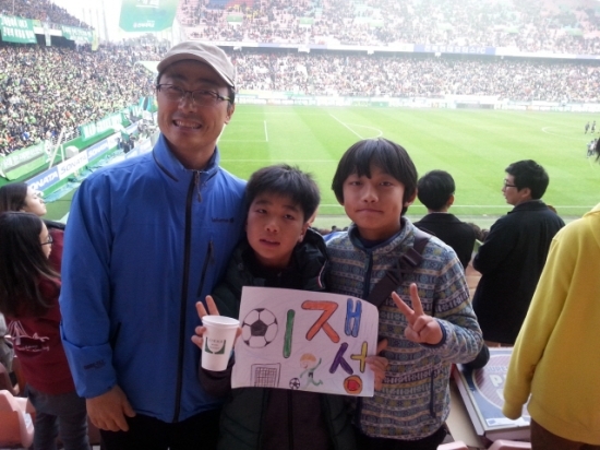 지난 21일 윤주영(아산초5) 어린이는 송하진 도지사, 장명식 도의원, 아버지 윤종호씨와 친구 이정운(아산초6) 어린이가 함께 한 가운데 전주월드컵경기장에서 소원인 현대모터스 축구경기를 관람했다.