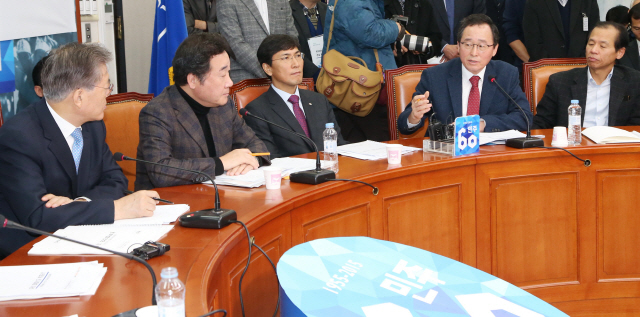 ▲ 29일 서울 국회 새정치민주연합 당대표실에서 열린 새정치민주연합 제3차 시도지사 정책협의회에서 송하진 지사가 전북도 예산안과 내년 총선대비 정책 및 공약에 대해 의견을 말하고 있다. 사진제공=전북도청