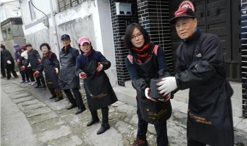 ▲ 지난 2일 전주 시니어클럽과 전주일하는 실버클럽 소속 어르신들이 중노송동을 찾아 연탄을 배달하고 있다.