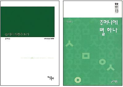 전북대학교 국어국문학과 김익두 교수의 시집 <숲에서 사람을 보다> (천년의 시작)와 영어영문학과 안정근 교수의 시집 <주머니에 별 하나> (문예원)가 한국출판문화산업진흥원(원장 이재호)이 선정한 ‘2015 세종도서 문학나눔’에 선정됐다. 주머니에> 숲에서>