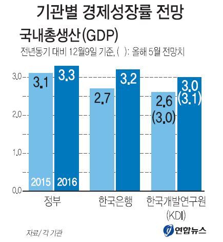KDI는 물가상승을 반영한 내년 경상성장률로는 4%대 초반으로 전망했다. 종합적인 물가지수인 GDP디플레이터가 올해(5%대)만큼은 아니더라도 유가 하락 영향으로 높게 유지될 가능성이 있다고 분석한 데 따른 것이다. 연합뉴스