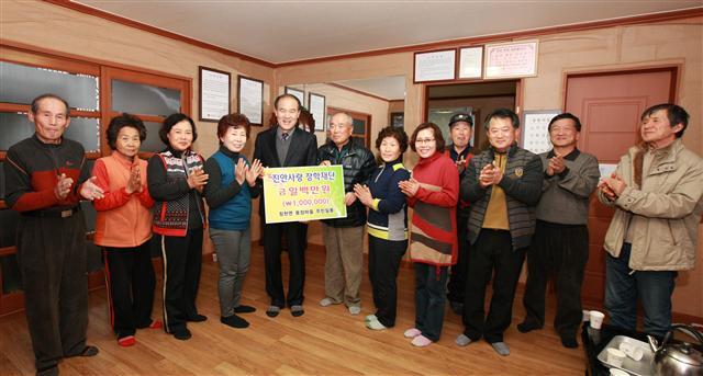 이날 전달된 장학금은 용정마을이 ‘쓰레기 3NO운동’우수마을로 선정돼 받은 시상금과 함께 지역인재양성을 위해 마을주민이 십시일반 정성을 모아 마련했다.